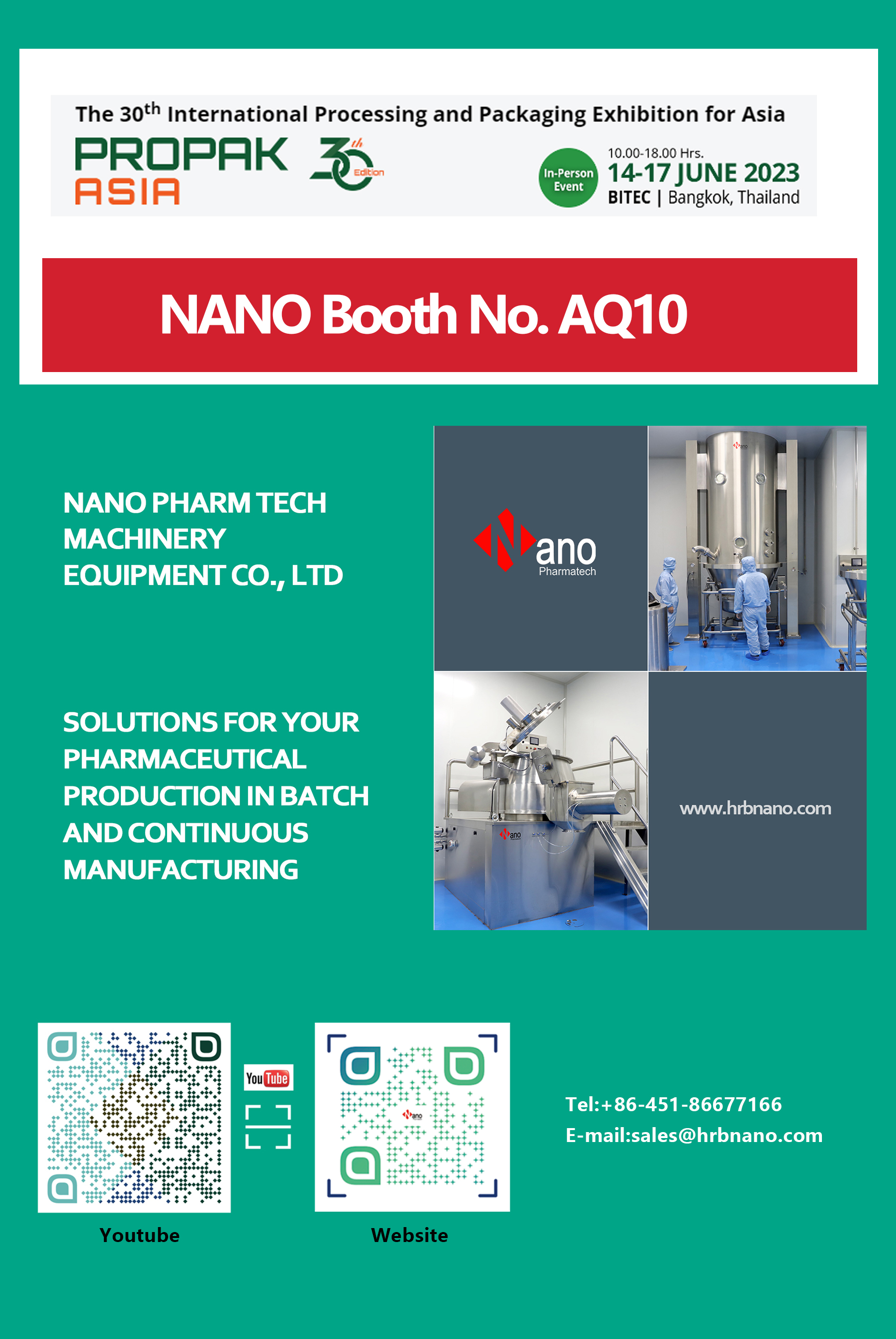 CPhI & P-MEC China 2023 will be held at Shanghai New International Expo Center from June 19th to 21nd, 2023. At that time,NANO will take part in the exhibition, and we sincerely invite you to meet in Shanghai.